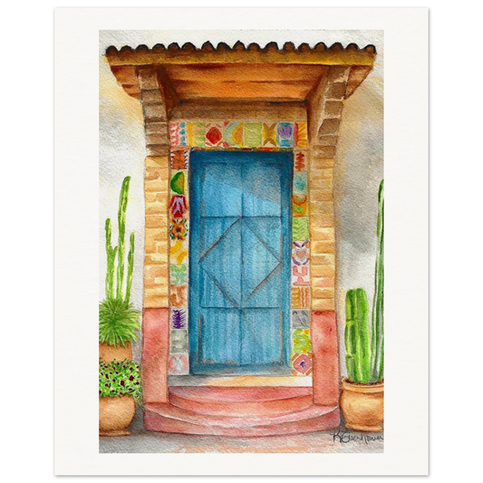 Vibrant Mexican Door Watercolor Print - Museum-Quality Matte Paper Poster