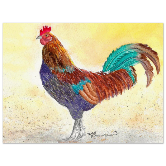 Radiant Rooster Watercolor Print -- Museum-Quality Matte Paper Poster