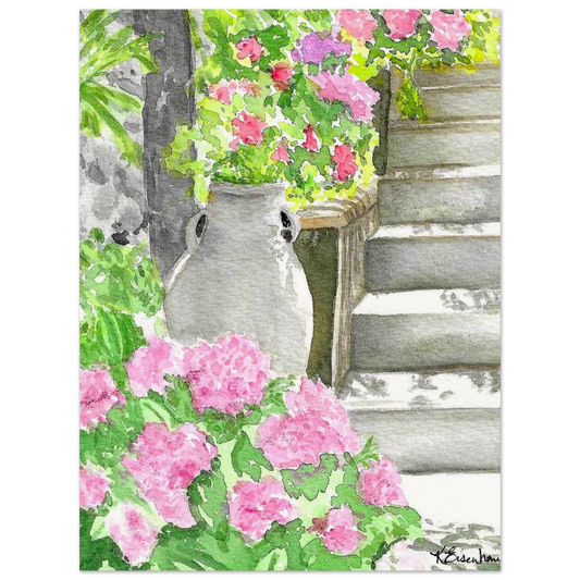 Italian Garden Stairway Watercolor Print -- Museum-Quality Matte Paper Poster